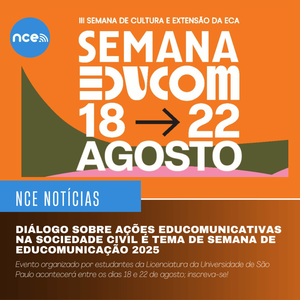 Nos dias 18 a 22 de agosto, acontecerá a Semana de Educomunicação 2025, evento organizado pelos estudantes da Licenciatura em Educomunicação da Escola de Comunicações e Artes da Universidade de São Paulo (ECA-USP). Neste ano, o evento tem como tema “Conectando vozes, abrindo caminhos”, reunindo estudantes, profissionais e egressos do curso para o diálogo sobre ações educomunicativas nas organizações da sociedade civil, comunidades locais, instituições educacionais (formais ou não formais) em território nacional.