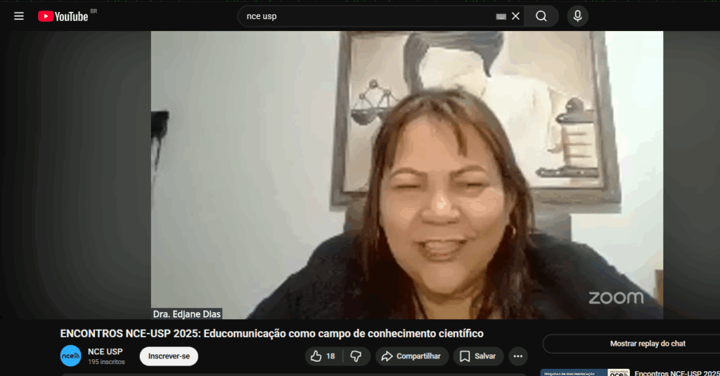 Na última quinta-feira (23), o Núcleo de Comunicação e Educação da USP (NCE-USP) promoveu mais um de seus Encontros, desta vez com o tema “Educomunicação como campo de conhecimento científico: problematizando processos de formação do pesquisador/a autor/a”, convidando a professora Dra. Edjane Esmerinda Dias da Silva. professora e coordenadora do curso de Educomunicação da Universidade Federal de Campina Grande (UFCG).